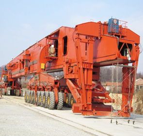 以及生產(chǎn)更新運(yùn)架產(chǎn)品能架設(shè)跨度40M高速鐵路箱梁的:SXJ1000T/40M一跨式架橋機(jī)(配套攀爬式運(yùn)梁車(chē)可以實(shí)現(xiàn)過(guò)隧道零距離架梁)和攀爬式運(yùn)梁車(chē)。并能對(duì)現(xiàn)有32M分體式運(yùn)架設(shè)備進(jìn)行改造,改造后能實(shí)現(xiàn)高低位架設(shè)跨度40M高速鐵路箱梁(高位改造不能過(guò)隧道,把原架橋機(jī)改造一跨式,把原運(yùn)梁車(chē)增加2軸。低位改造能過(guò)隧道架梁,把原架橋機(jī)改造一跨式低位,把原運(yùn)梁車(chē)改成攀爬式運(yùn)梁車(chē)并增加二臺(tái)喂梁臺(tái)車(chē)實(shí)現(xiàn)過(guò)隧道架梁)。